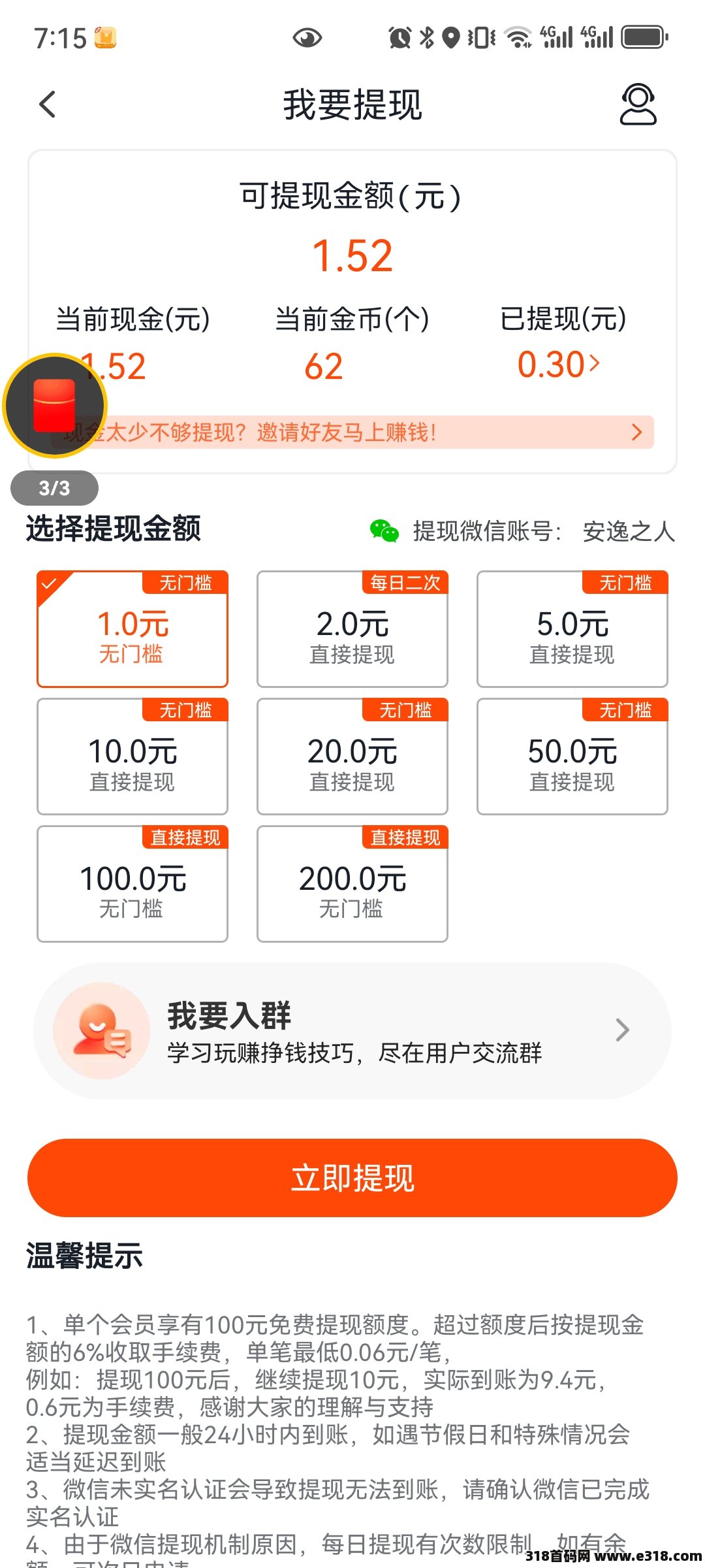 3.金币兑换余额后,新人可提现0.3元,后续1元提现,秒到微信零钱!